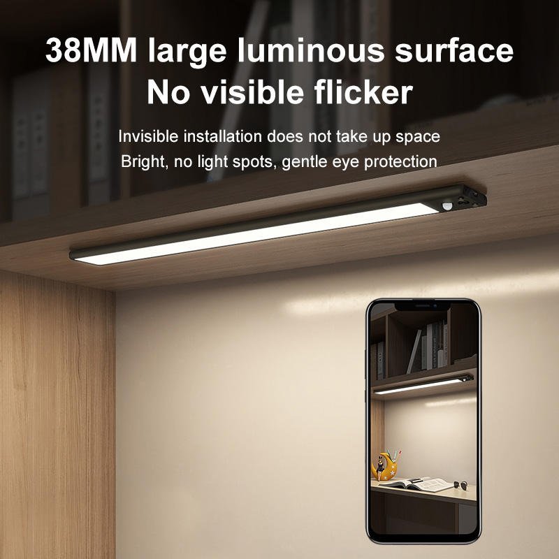 This ultra-thin indoor LED motion sensor light offers intelligent illumination and modern convenience in a sleek, minimalist design. Powered by a 5V USB rechargeable battery, it eliminates the need for wiring or frequent battery changes while delivering versatile lighting that adapts to your needs. The built-in motion sensor automatically activates the light when movement is detected, making it perfect for dark spaces like kitchen cabinets, closets, wardrobes, hallways, or under shelves, and helps save energy by turning off when no motion is sensed. With three selectable color temperatures and dimmable brightness, you can switch between warm, neutral, and cool light to create the ideal atmosphere for any activity — whether it’s bright task lighting or soft mood illumination. Designed to blend seamlessly with contemporary interiors, this rechargeable LED light enhances visibility, convenience, and ambiance throughout your home or office.